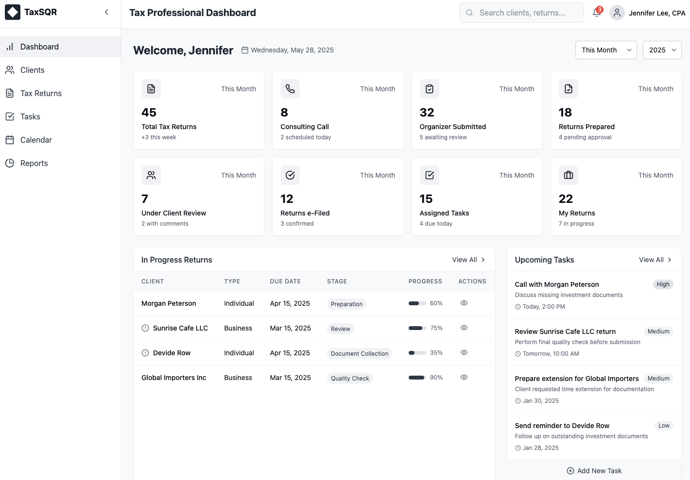 Whether you're a CPA team managing 50 clients or an expat filing solo, our delivery adapts to your needs.