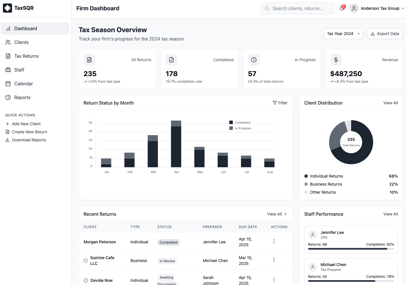 Clients receive on-time, well-reviewed returns with full documentation and organized delivery.